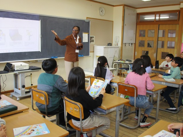 ALTの先生の自己紹介を聞きました。初めて知るものや、驚く内容のものもあり、大盛り上がりでした。