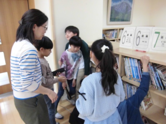 4月23日に5-3は図書室オリエンテーションをおこないました。子供たちは図書室の役割を考えたり、本を探したりしていました。