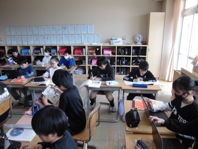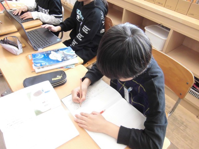 5年生 国語科 「銀色の裏地」 公開日 2025/04/30 更新日 2025/04/25 5年生 「銀色の裏地」の学習をまとめました。自分の一番印象に残った場面とその理由を書き、それを友達に伝えました。