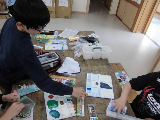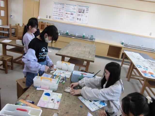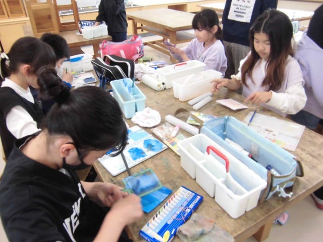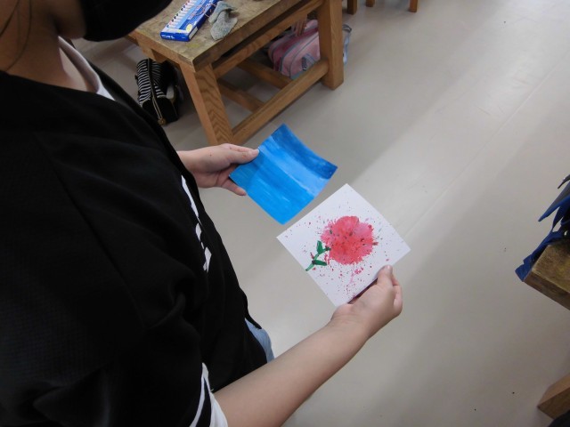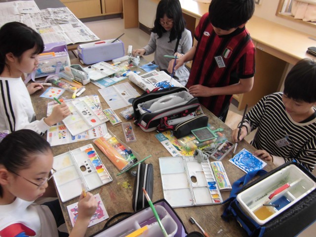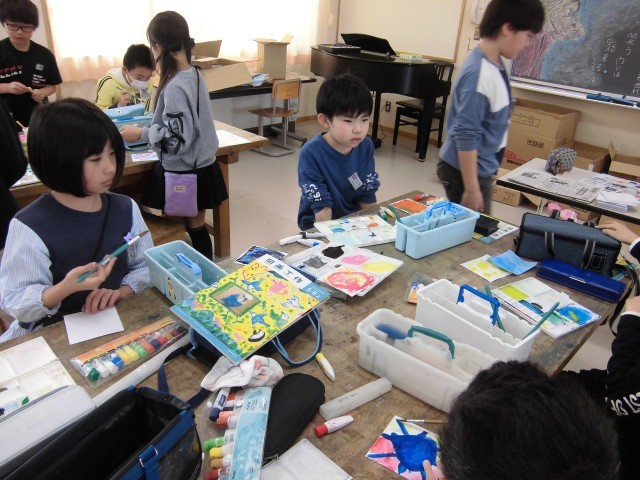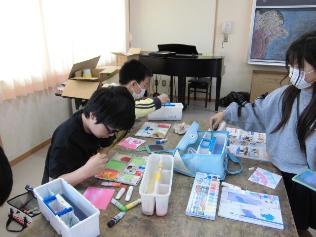 図画工作科で「こころのもよう」をしています。自分の気持ちを画用紙に表現しました。様々な気持ちの表し方があり、面白いです。