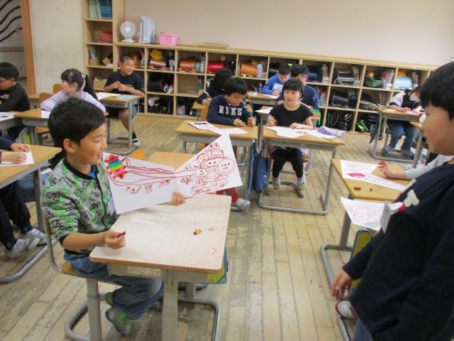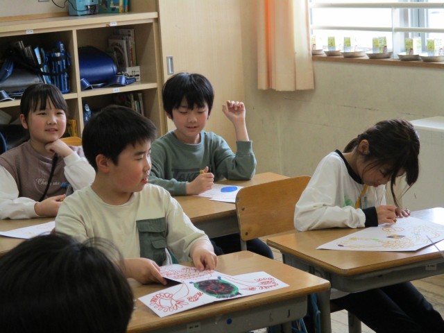 自分で描いた種から想像を広げ、オリジナルの花を描いています。彩色するのが楽しみです。
