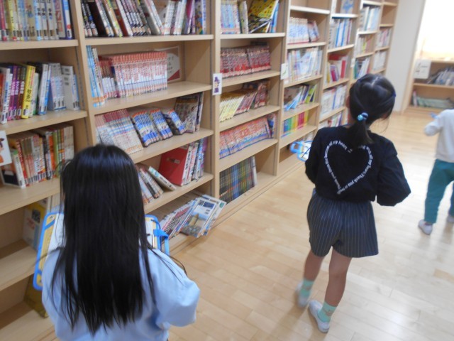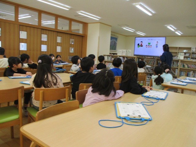 司書の先生の読み聞かせを聞いたり、図書室にどんな本が置いてあるのかを調べたりしました。