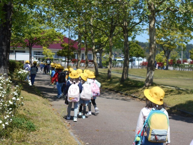 6年生さんに支えてもらいながら、ピースフル公園に到着しました。