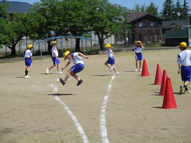 ジャンプするタイミングを練習しています。