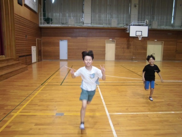 休み時間の様子です。シャトルランの音楽を流すと走り出していました。元気に活動しています。