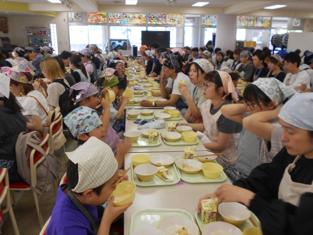 保護者の方には、給食準備や配膳を行ってもらい、子供たちと一緒に給食を食べてもらいました。