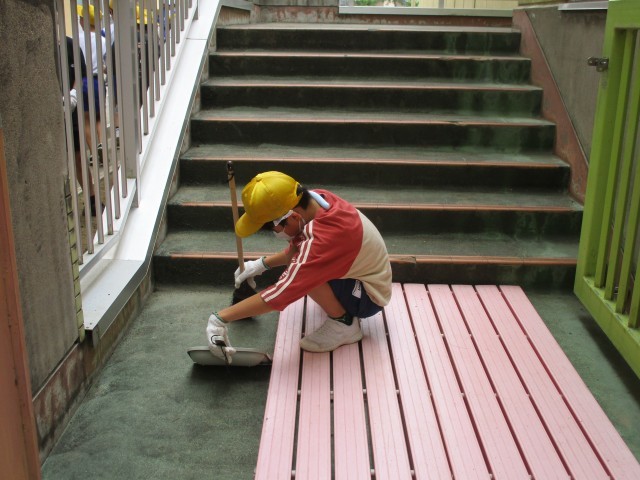 プールの入り口近くの砂をきれいに掃きました。きもちよく使えそうですね。