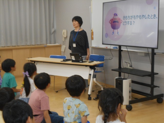 1年生 ストレスマネジメント教室 公開日 2025/06/12 更新日 2025/06/12 1年生 いらいらした時やもやもやした時の対処法についての学習をしました。深呼吸をしたり、心の中で10をゆっくり数えたりするなど様々な方法を知ることができました。