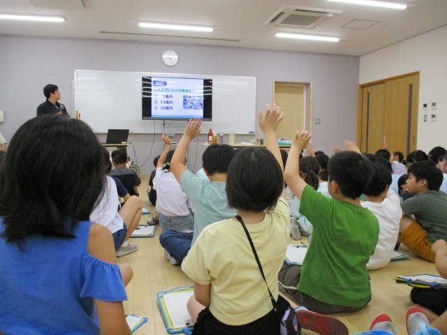 市役所等から来ていただいた講師の先生に、ごみについてのお話をしていただきました。