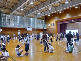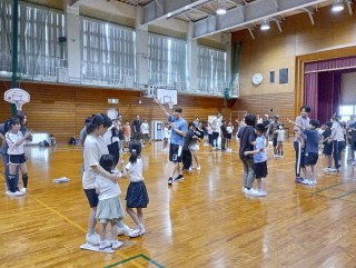 6/28 5年生親子学級 公開日 2025/06/30 更新日 2025/06/29 速小ニコニコPTA 6月28日(土) 外部講師による5年生の親子学級「親子で楽しむ運動あそび」が行われ、兄弟姉妹合わせて約110名が参加しました。ペアで行う体幹トレーニングや新聞紙を使ったゲーム。"おしり"と言われたら靴を取る反射神経を鍛えるゲームなど、盛り沢山なメニューを体験し、笑顔や汗があふれる楽しい1時間半となりました! +1