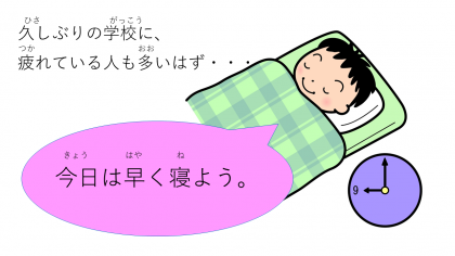 今日から学校が再開されました。今日一日、楽しくすごせましたか?休業中と比べて生...