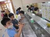 給食前や掃除の後等に、1日に3回、手洗いタイムを設定しています。手洗いタイムで...