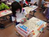 図画工作科の学習では、飼育しているザリガニを題材にした絵を描いています。ザリガ...