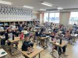 発表の後は、質疑応答の「聴きあいタイム」です。 保健委員の発表への感想や、学校医...