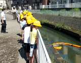 初めに、がめ川に設置されている「オイルフェンス」とそこに溜まったごみを見学しま...