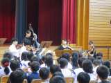 桐朋オーケストラ・アカデミーの演奏を全校で聴きました。バイオリン、ビオラ、チェロ...