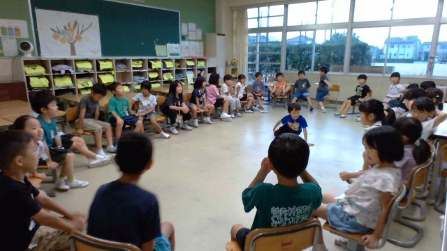 どのような夏休みを過ごしたのかを聴き合うきっかけとして「フルーツバスケット」を「夏休みバスケット」と変えて行いました。