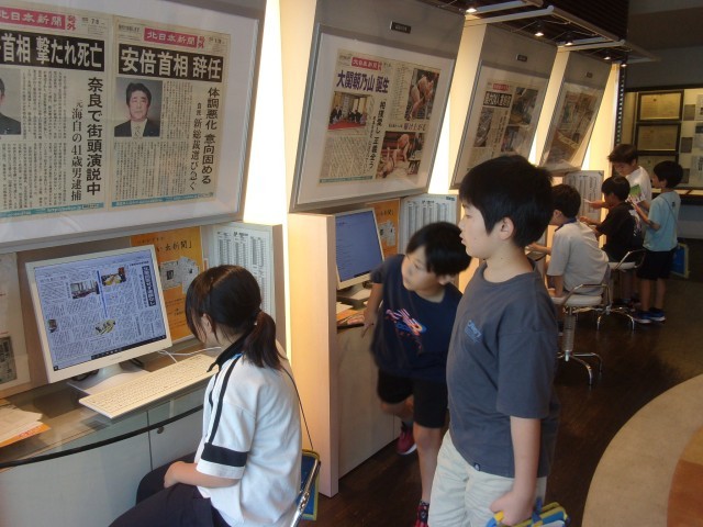 校外学習では、午後から「越中座」へ行きました。新聞ができるまでにどんな工夫がされているか聞き、その場所でしか体験できないことを体験しました。気になったことについては積極的に質問する姿も見られました。