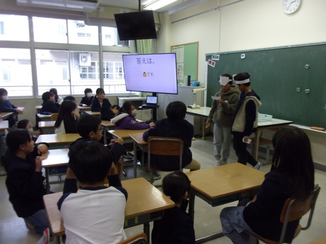 今日は、総合的な学習の時間に調べた内容を3年生に発表しました。
