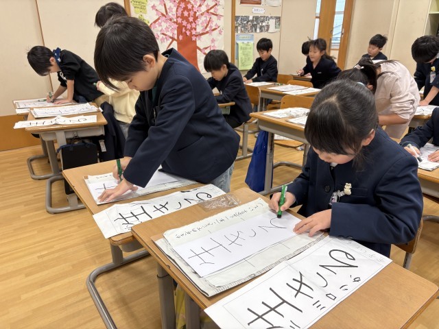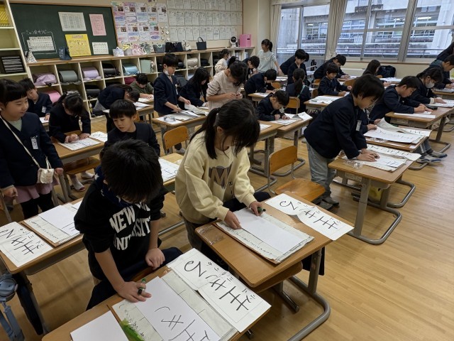 始業式の後、書初大会がありました。これまでの練習を思い出しながら、「濃く書こう」「最後まで気を抜かないぞ」と目標を決めて取り組む様子が見られました。一人一人の気持ちが字に表れており、新年のよいスタートを切った子供たちです。