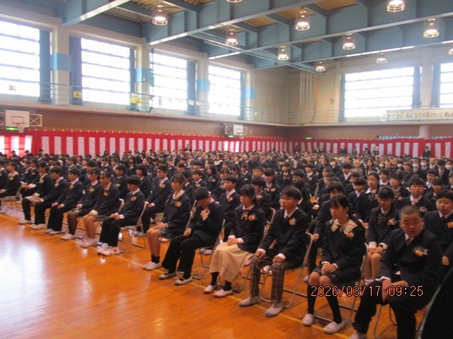 6年生が決めた卒業式のテーマは「ピースー成長と感謝を表そうー」です。門出の言葉や合唱で、自分たちの成長した姿を示し、感謝の気持ちを伝えました。