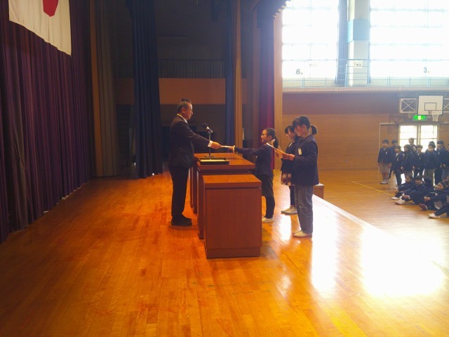 3月24日(火)令和7年度修了式を行いました。各学級の代表の子供が登壇し、校長先生から修了証を受け取りました。