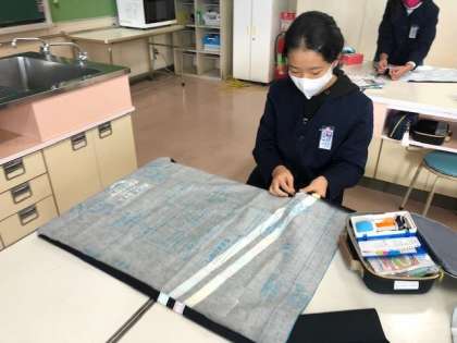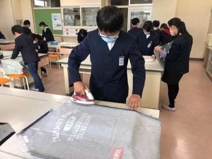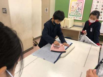 今日はミシンがけする場所をアイロンで折り目をつけています。