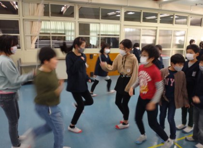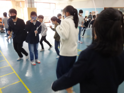 短い練習時間を大切にして、チームのみんなで息を合わせて8の字跳びの練習をしています。