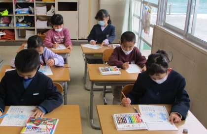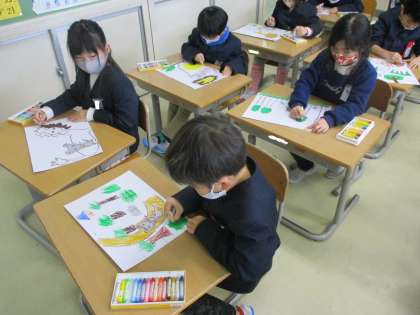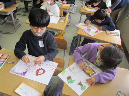 『ライオンとネズミ』の絵本を読んで、自分の好きなところを選んで描きました。