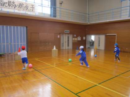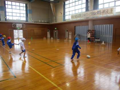 前跳びや後ろ跳び等に一生懸命に取り組んだり、的に向かってまっすぐにボールを蹴ったりしました。