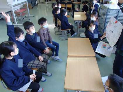 4年生の発表に、多くの子供たちが感想を言ったり質問したりしていました!