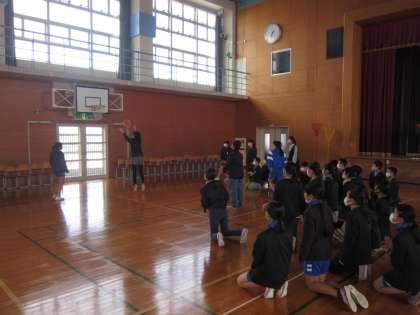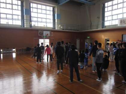 次はフリースロー大会です。近いところからねらって1点を取るか、遠いところからねらって2点を取るか・・・。ねらいを定めて・・・。