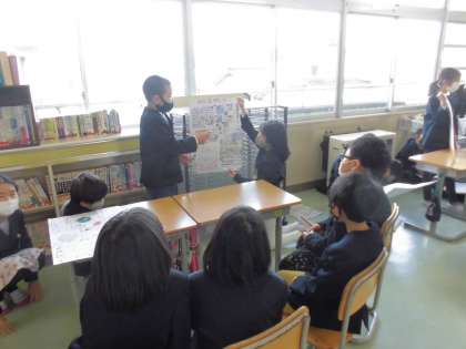 1組は、3年1組の人に発表しました。