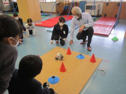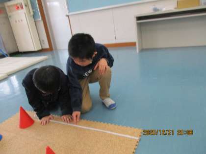 ロボットをどのくらい走らせればよいか、慎重に巻き尺で測った長さを入力し、何回も試しました。