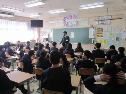 今日の終業式は、学年ごとに行われました。始まる前に、改めて、どんな気持ちで式に臨むのか確認をしました。