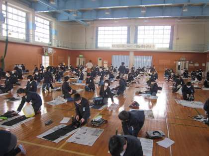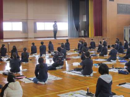 今日は、2時間目に全校で書き初め大会がありました。準備を静かに行う様子から、冬休みにがんばった成果を出そうという強い気持ちが伝わってきました。