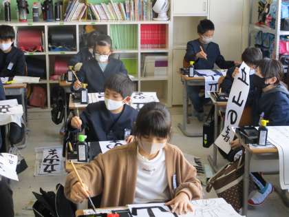 3年生の頃や、つい先月の12月の時よりも、さらに集中力が高まっていて、子供たちの日々の成長を感じた書き初め大会でした。