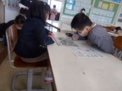 中には、貴重な休み時間を返上して、総合的な学習の時間の課題作業や、委員会に依頼された掲示物づくりに取り組んでいる子供もいます。自由に使える時間に、自分で決めたことに取り組む姿から、もうすぐ上学年になろうとしている子供たちの成長を感じました。
