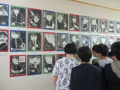 自分のクラスや同じ学年の友達の作品を見て、「○○くんの背景の堀片が丁寧だね」「リコーダーをもつ手がリアルだね」など、友達の作品のよさを見つけていました。
