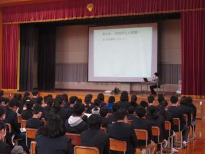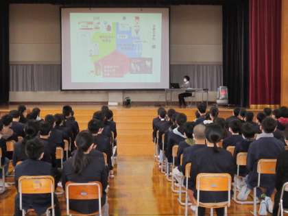 今日は、学校薬剤師の先生から薬物のことについて話を聞きました。各教室では、体育科の保健学習で、薬物のことを学習していましたが、より詳しく説明をしてくださいました。