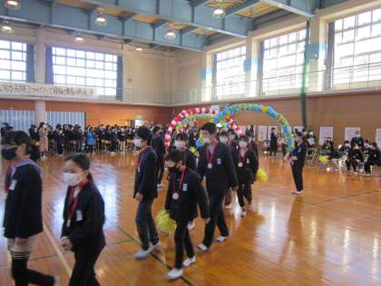 今日は、卒業を祝う会がありました。今までと反対側に座るということで、少し緊張した面持ちです。