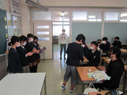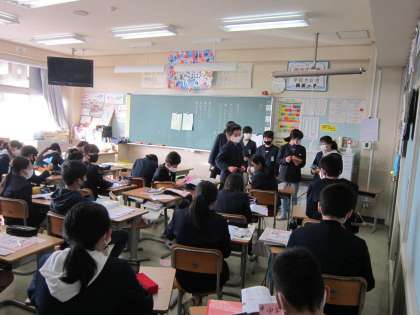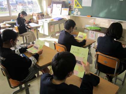 朝の会をしていると、5年生が6年の各教室に来てくれました。一人一人に名前が書かれた写真入りのメッセージカードを渡してくれました。温かい気持ちになりました。ありがとうございました。