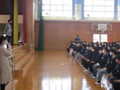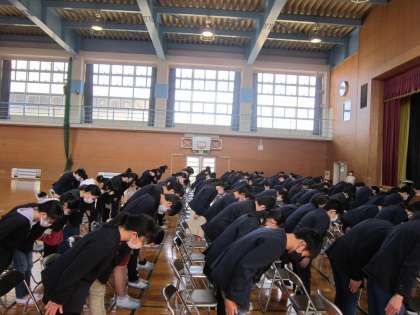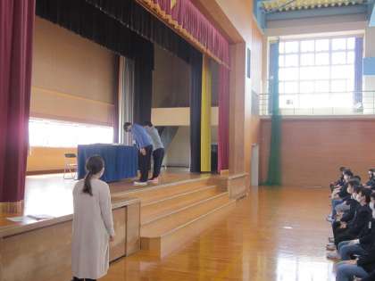 今日は、学年集会がありました。卒業式に向けて練習をしていくことや後半では、全員でその動きを確認しました。各教室でも練習をしていきます。