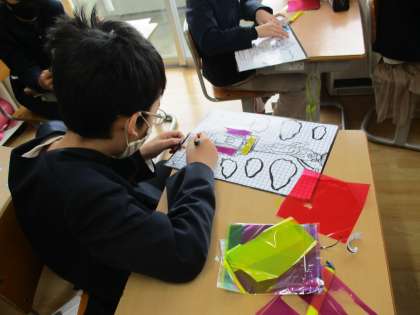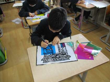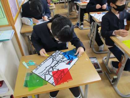 自分の選んだ世界遺産のステンドガラス作成中です。
