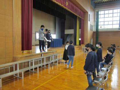 今日は、実際に担任から呼名をされて、子供たちが卒業証書を受け取る練習をしました。立つタイミングや返事の仕方などを確認しました。