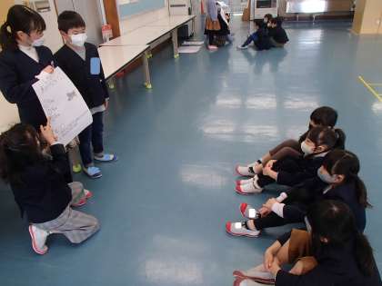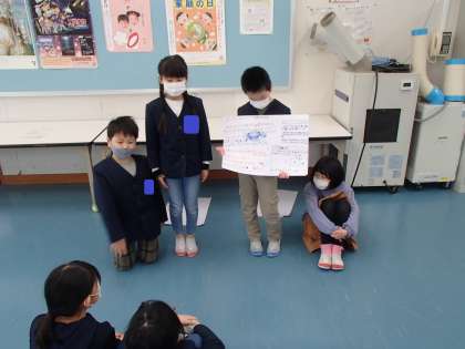 3年生は、総合的な学習の時間で学習してきた「鵜坂の自然のすてき」について、2年生に発表する活動に取り組んでいます。