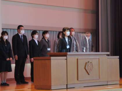 始業式では、校長先生より、「心も体も大切にすること」「自分と同じように仲間も大切にすること」「チャレンジして、最後まで諦めないこと」3つのお話を真剣に聞きました。