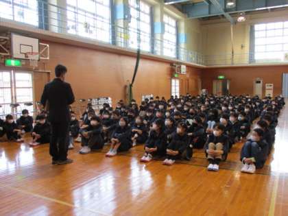 始業式後、6年生は学年開きを行いました。最高学年としての意気込みが伝わってくる後ろ姿です。