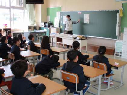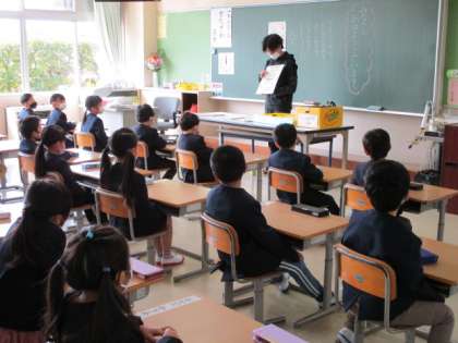 いよいよ小学校生活がスタートしました。先生の話を集中して聞いています。