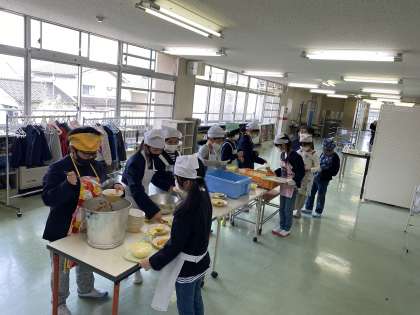 今年初めての給食でした。素早く準備をして配膳をしています。